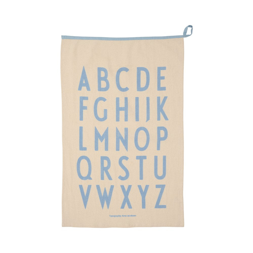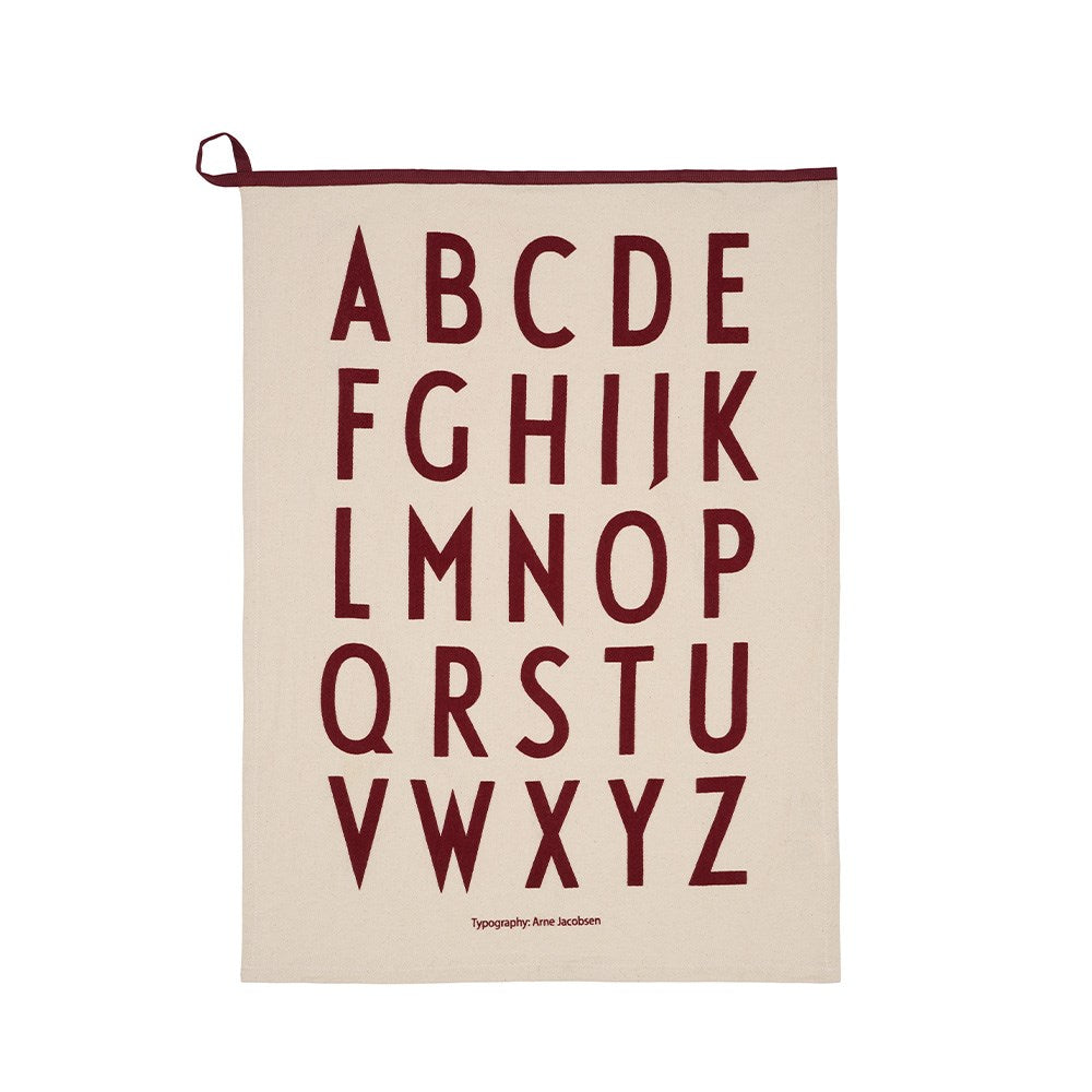 Premium edition of the classic Tea towel from 2011 featuring Arne Jacobsen’s Vintage ABC. Extra large and with ribbon as a decorative detail.